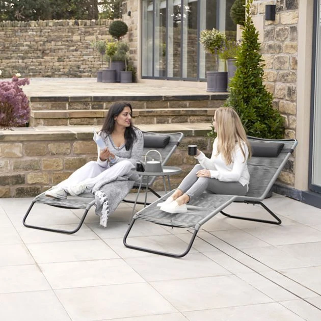Garden Rio Sun Loungers 2 Piece Set PU Grey: