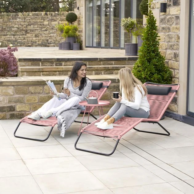 Garden Rio Sun Loungers 2 Piece Set PU Pink: