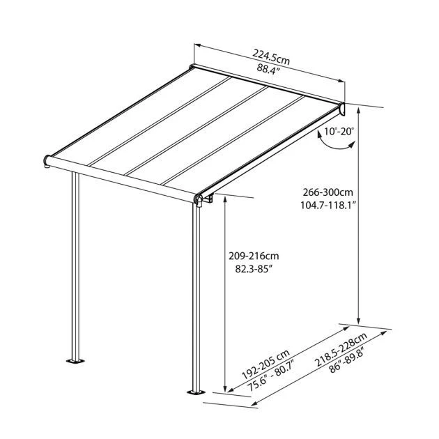 Sierra 2.3 x 2.3 Patio Cover Dimensions: