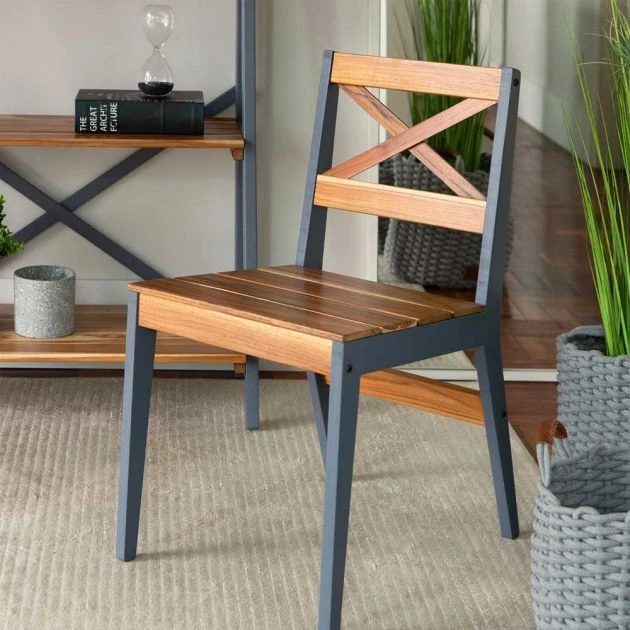 A stunning dining chair that will go with any dining set, this one has been made with certified teak wood in a contemporary slatted design. For your convenience, this is easy to assemble, and once assembled, this will go perfectly in any room, from your kitchen, to your conservatory, patio or balcony, or even your garden when gathering outdoors with friends for a drink and catch-up.