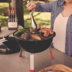 A compact and lightweight charcoal grill to add to your garden and cook your BBQ food on. During those summer months, the evenings when you fancy some burgers and sausages but there are only a few of you to eat, this charcoal grill could be the ideal option as it only needs up to 1kg of charcoal in order to cook your summer favourites and the steel legs and silicone guards enable stability when cooking. Additionally, for you to show off, all the body, lid and tray are made with carbon steel, to give off beauty and durability.