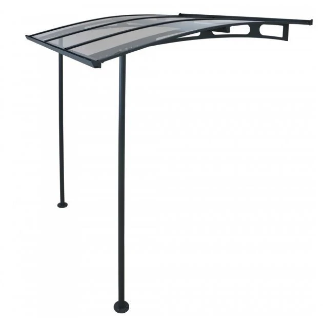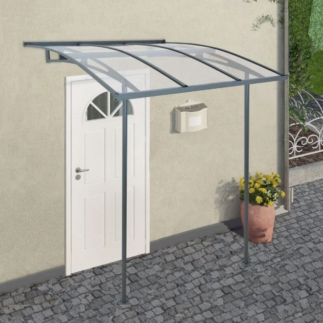 Palram-Canopia Vega 2000 Door Canopy: This Palram-Canopia Vega 2000 door canopy features legs which will set it aside from the standard door canopy styles. This canopy can be placed outside the front of the house to create an undercover area over the door or alternatively on a balcony to create shade and rain protection. The Vega canopy has durable powder coated aluminium profiles and a strong 3mm clear polycarbonate roof. The support arms are made from laser-cut powder coated galvanised steel to create a strong and long lasting structure for the outside of the house. The canopy features gutters to redirect the rainwater and hidden rubber seals that sit against the wall to prevent leakage. The canopy has adjustable pole positions so that you can change the width to suit your doorway. This canopy is delivered flat packed for easy self-assembly with all fittings and comprehensive assembly instructions.