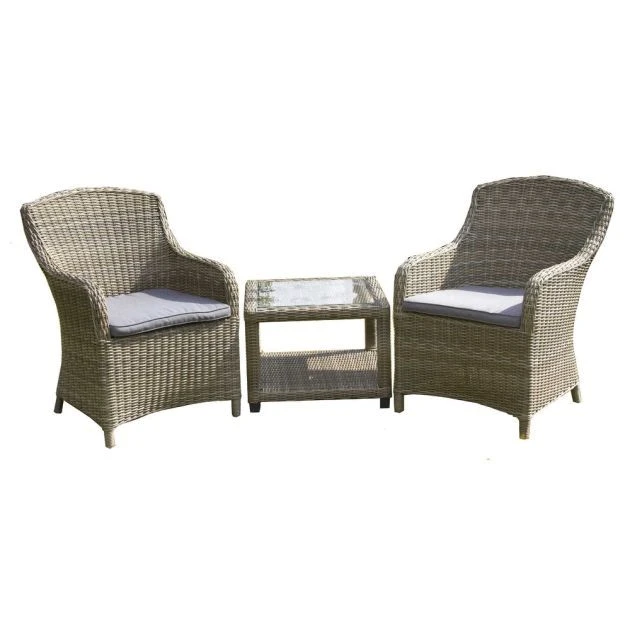 Royalcraft Wentworth Imperial Companion Set: The Wentworth Imperial Companion Set by Royalcraft is a traditional and high quality piece of outdoor garden furniture perfect for relaxing outside in the warmer months. The 3 Piece Companion Set includes two imperial chairs with seat cushions for added support and comfort and a small square tempered glass top table to put your drinks on. The Royalcraft furniture set retains it classic style with it hand woven synthetic half round weave rattan and aluminium framework construction for a sturdy finish.