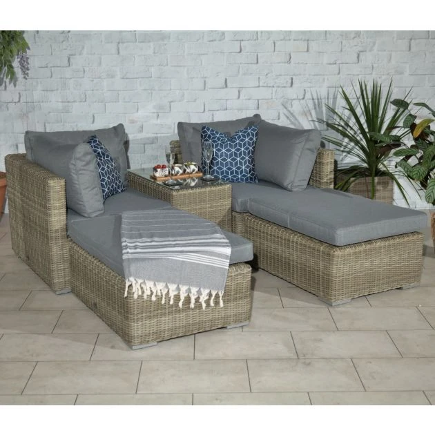 Royalcraft Wentworth Natural Rattan Multi Relaxer Sun Lounger Set 4 Seater: