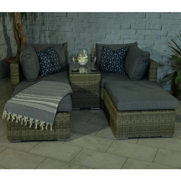 - 2 X Left Hand/Right Hand seat with 2 x ottoman seats & 1 x side table